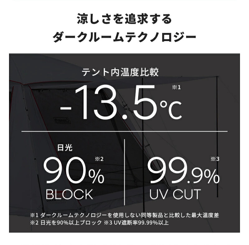 「ダークルームエアー2ルームハウス」は、コールマン独自のダークルームテクノロジーを採用。